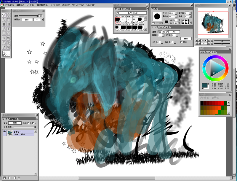 効果がおもしろいブラシがおおいけど、そのぶん上手く使わないといかにもな、ださい絵ができてしまいそうな、そんなソフトですな~。