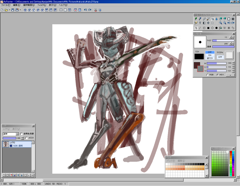 普段はスポイト多用で色を馴染ませていくのですが、このソフト、超スポイトがめんどうなので、今日はパレットによく使う色を登録してから描き始めてみましたらストレスが半減しました。