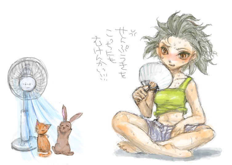 左の扇風機を独占しているやつら:りんごさん 右:とん です。