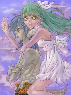 背景は空に浮かぶ島々だと思いねえ。