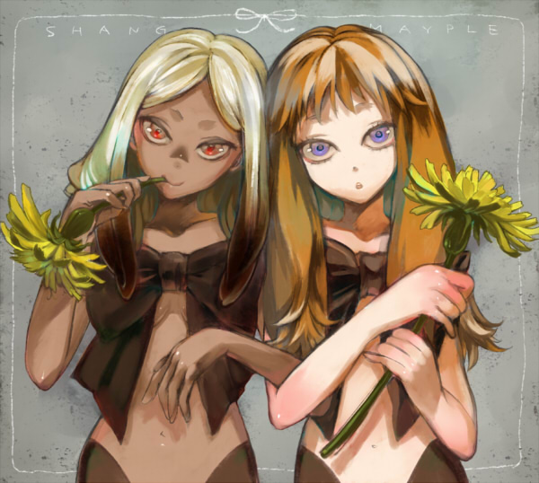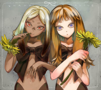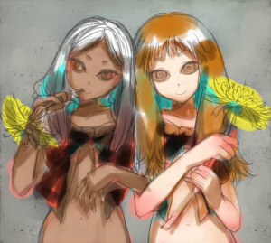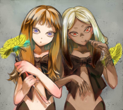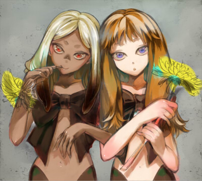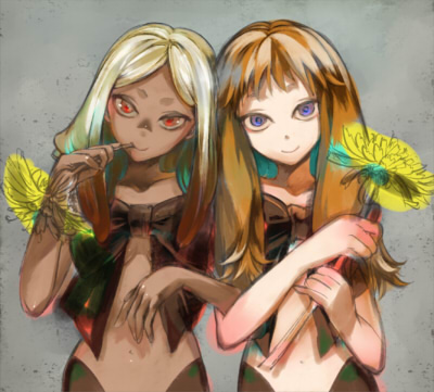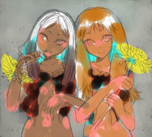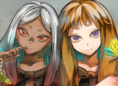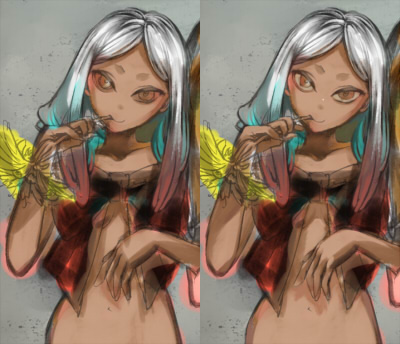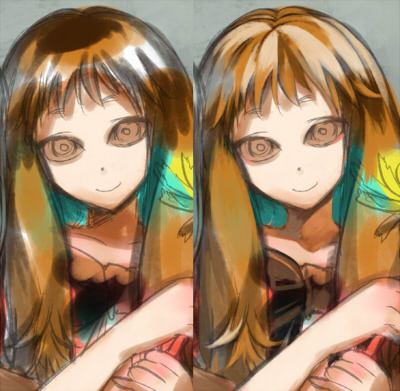 赤眼ちゃんの後頭部を少し大きくし、髪の色をオーバーレイで黄色にしました。