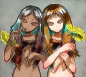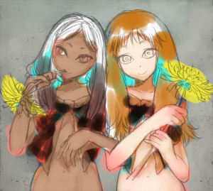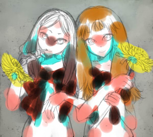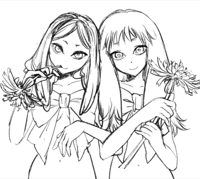 右の子の髪の毛も塗ります。