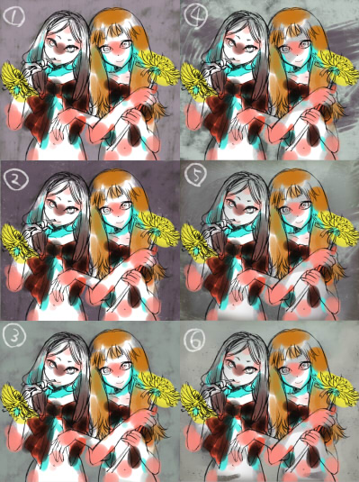背景のまえにすでに色が置いてありますね。