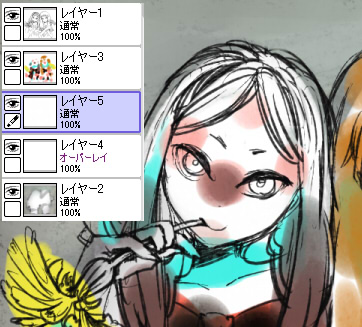 このレイヤに加筆しては結合、の繰り返しです。