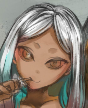青眼ちゃんにも同じ灰色をスポイトして、瞳上部にさしました。
