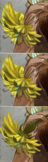 花の真ん中あたりは、最初に描いた色より薄めの色をそのへんからスポイト。